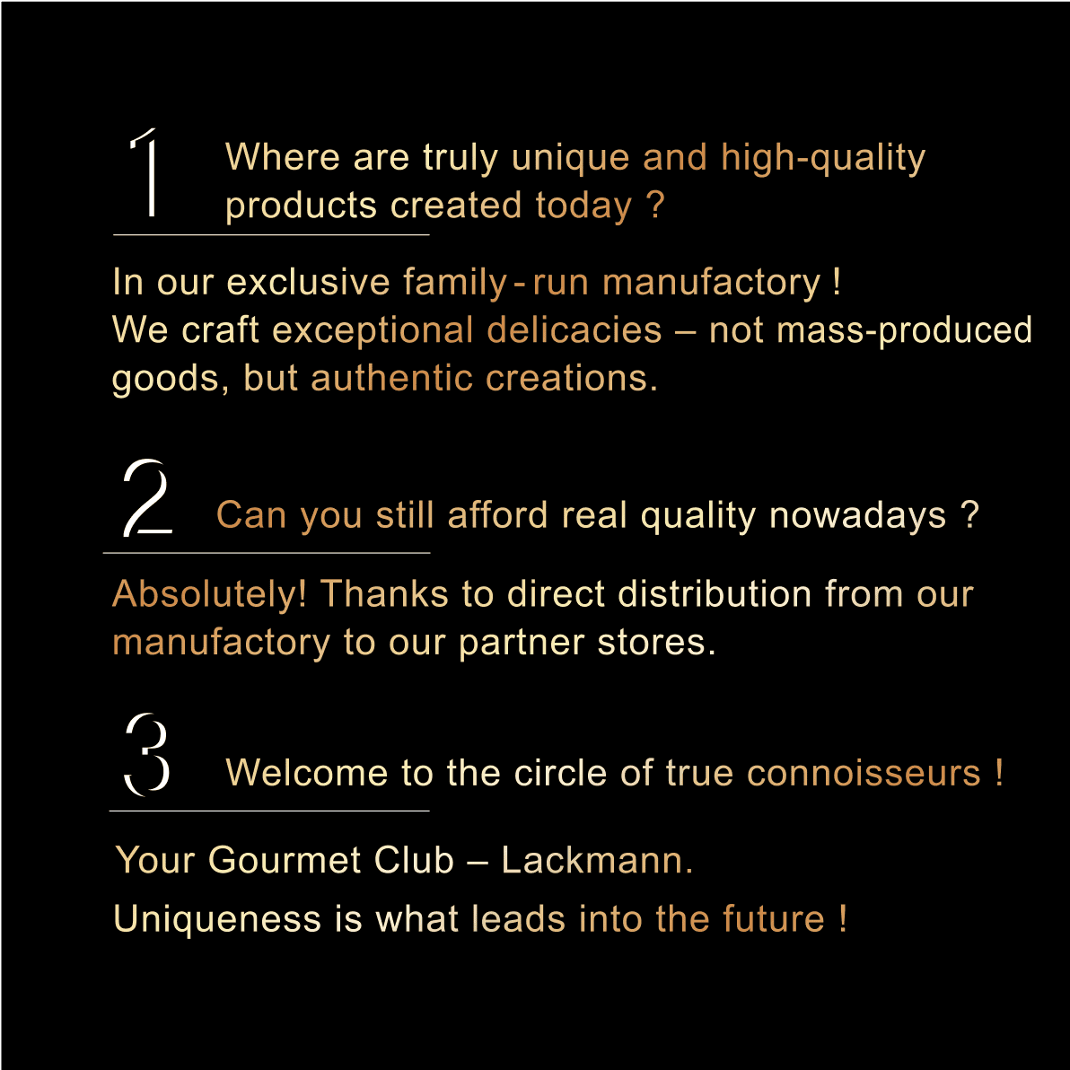 Today, in a highly technological era of overproduction and strong competition, especially in the food industry, industrial manufacturers strive to cut production costs not only through process optimization but also by reducing recipe quality. As a result, they lower product prices at the expense of quality. However, demand for high-quality and unique products continues to grow, creating new segments in the market. This explains the popularity of Lackmann products in many countries.